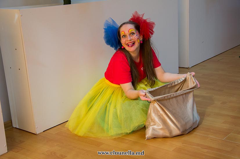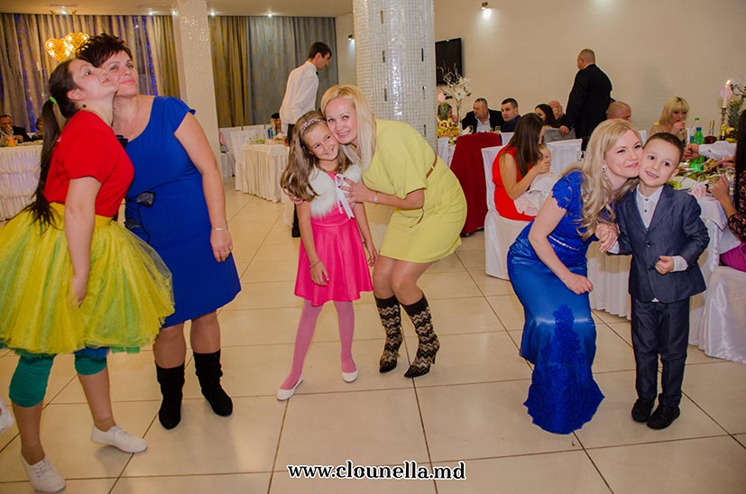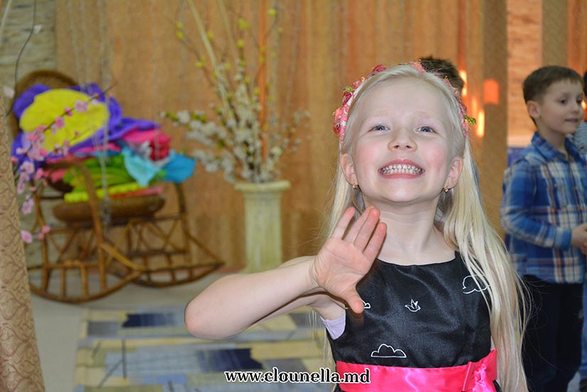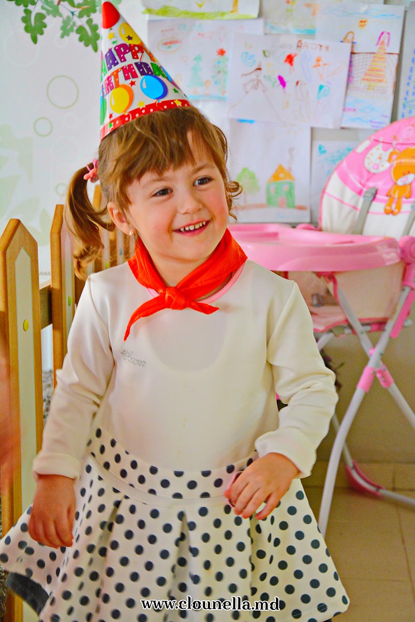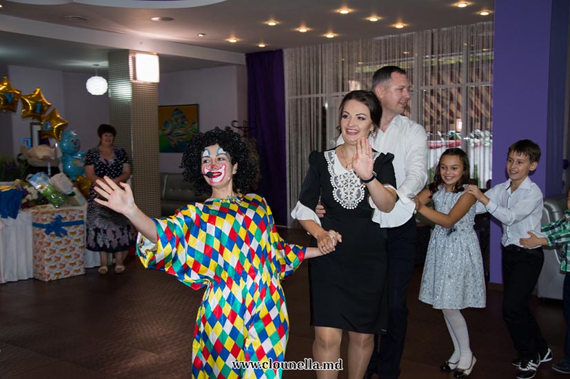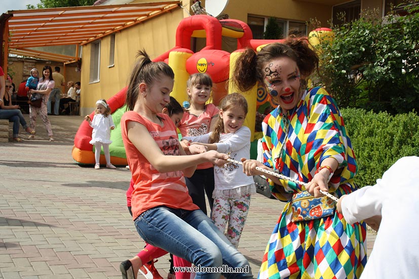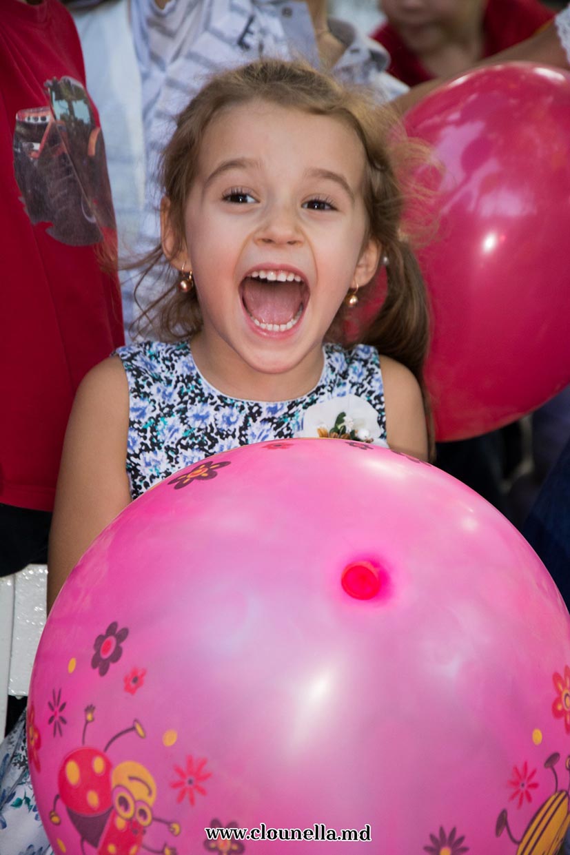 Sincer, la început aveam dubii, vârsta copiilor îmi părea prea mică pentru a le capta atenţia, dar pâna la urma chiar şi cea mai mică, de fapt eroina principală a sărbătorii, a fost absorbită totalmente de atmosfera veselă. Bravo Clounella, a fost foarte simplu să colaborăm.