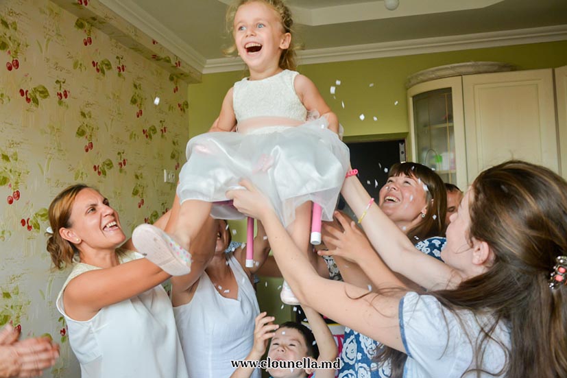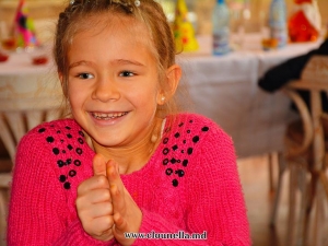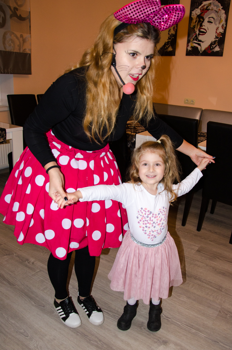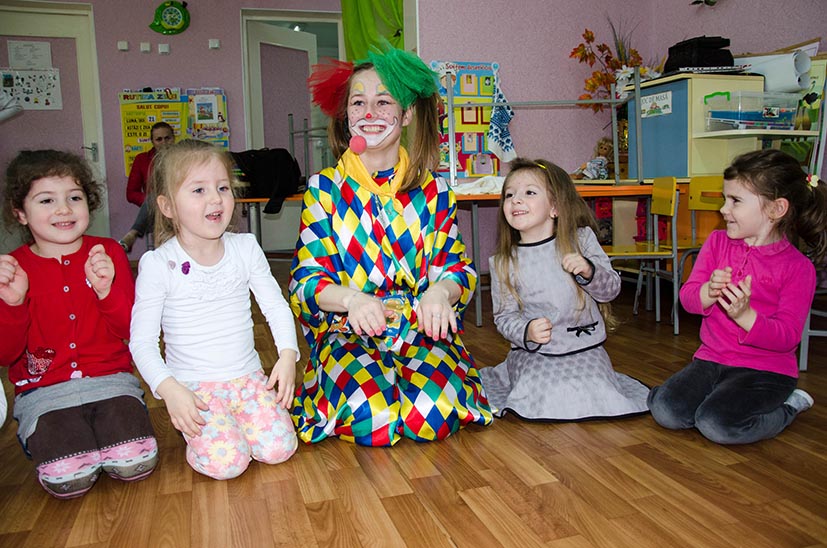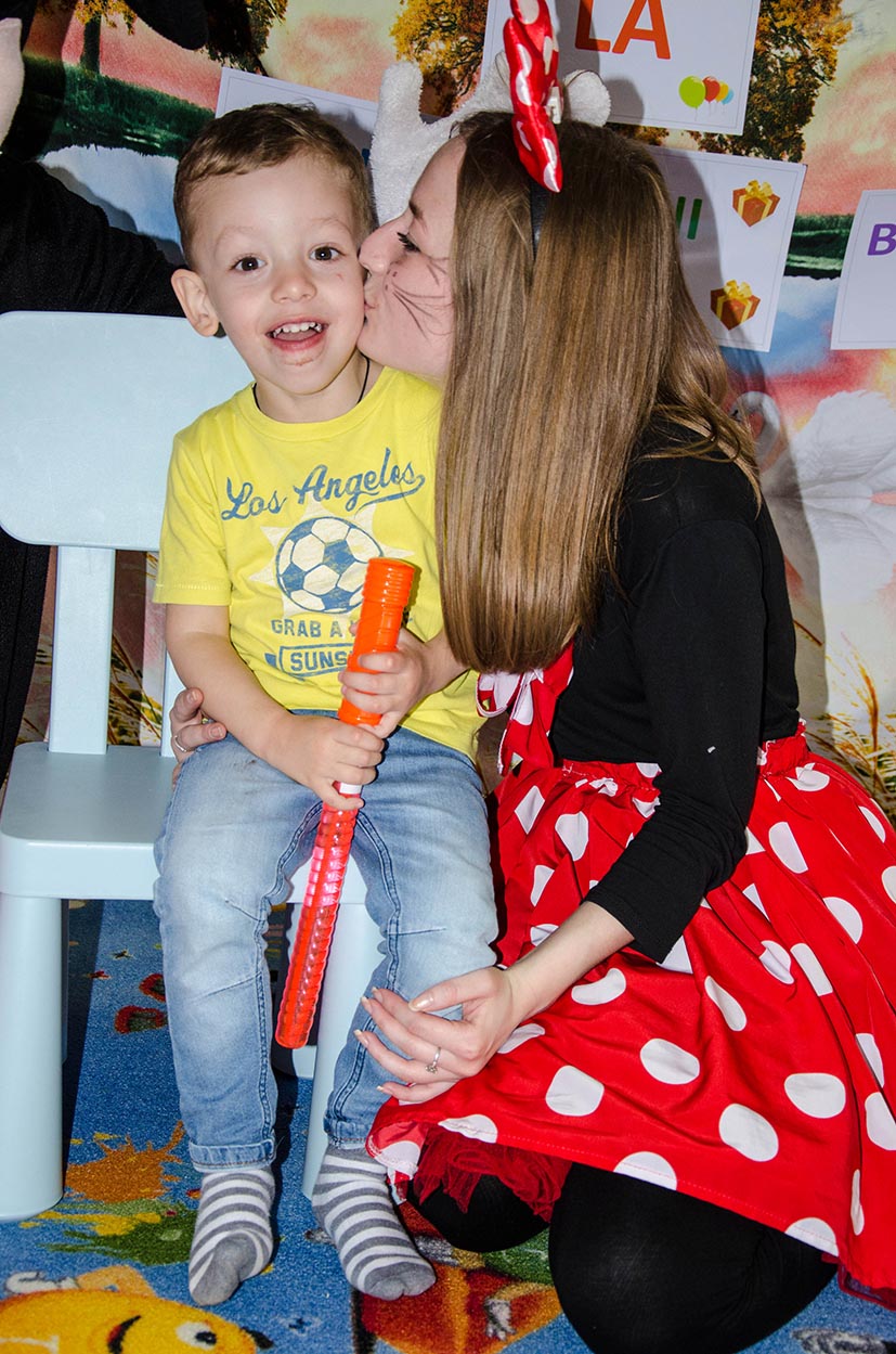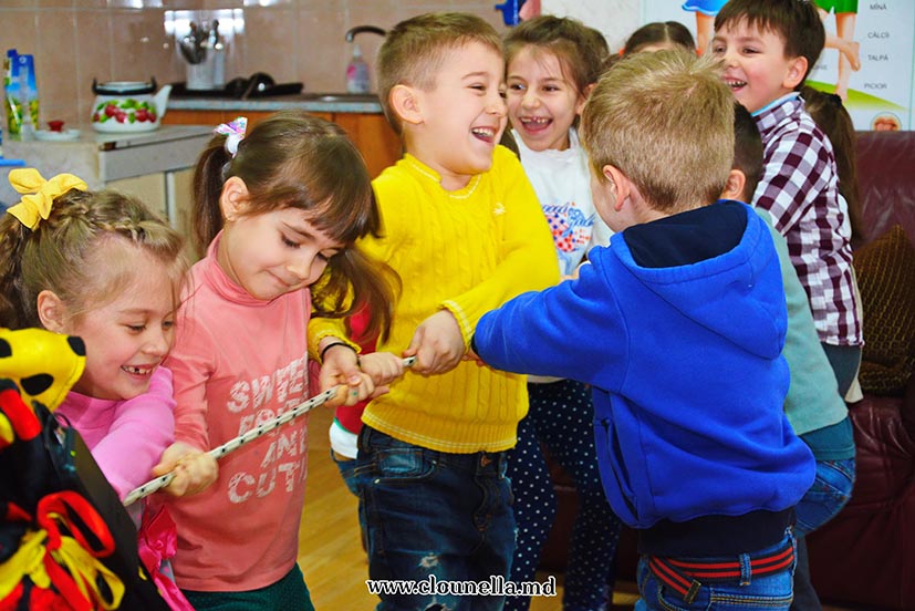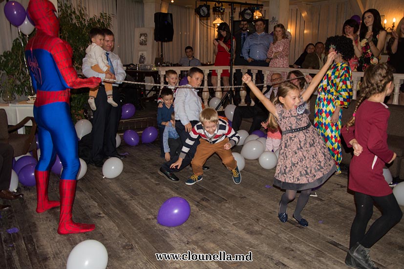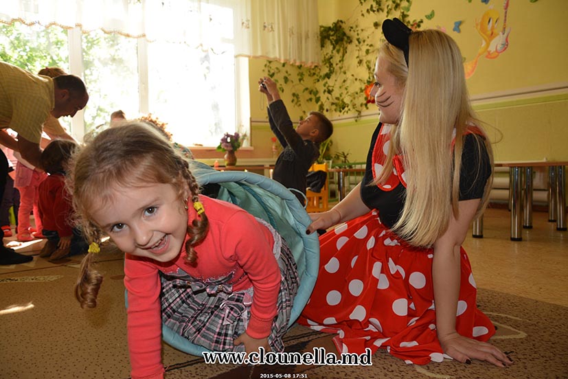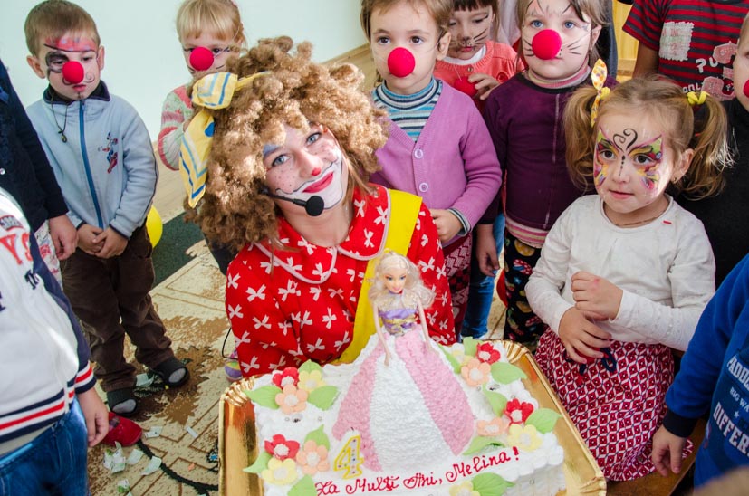 Sincer, la început aveam dubii, vârsta copiilor îmi părea prea mică pentru a le capta atenţia, dar pâna la urma chiar şi cea mai mică, de fapt eroina principală a sărbătorii, a fost absorbită totalmente de atmosfera veselă. Bravo Clounella, a fost foarte simplu să colaborăm.